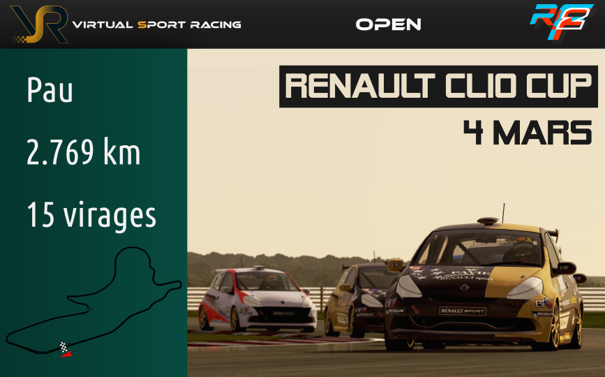 Nous avons pensé à tout. hop un open de plus le 4 mars 2020 et cette fois c’est à Pau avec les Renault Clio Cup 2010. Vous l’aurez compris, Info serveur et inscription sur le simagenda