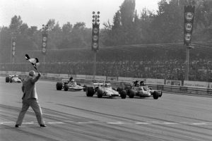Motor racing, Italian Grand Prix, Monza, Italy, 5th September 1971, Great Britain’s Peter Gethin (left) in a BRM car beats Sweden’s Ronnie Peterson (centre) to win the race (Photo by Popperfoto/Getty Images)Nous sommes au Grand-Prix d’Italie de l’an 1971. À cette époque, Monza ne possédait aucune chicane, seulement des courbes rapides. L’aérodynamisme n’existait pas ou peu à l’époque, du coup l’aspiration avait un rôle essentiel. Il était impossible de s’échapper d’un groupe de ce fait. C’est ainsi qu’au terme des 55 tours de course et de l’heure 18 de roulage, Peter Gethin remporte la course avec 0.6 secondes d’avance… sur le cinquième !
